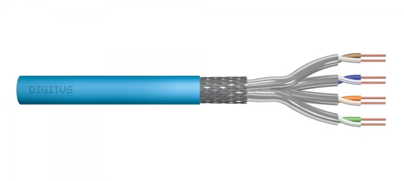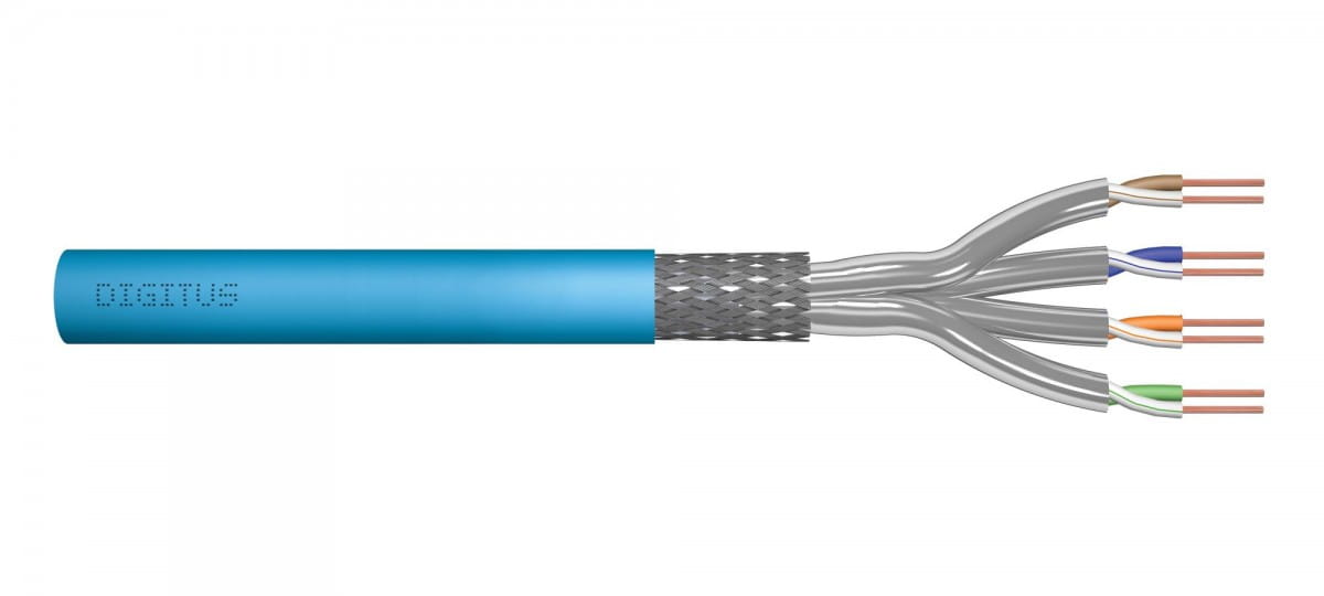 Kabel teleinformatyczny instalacyjny DIGITUS kat.6A, S/FTP, Eca, drut, AWG 23/1, LSOH, 50m, niebieski, ofoliowany - OTW OPAK