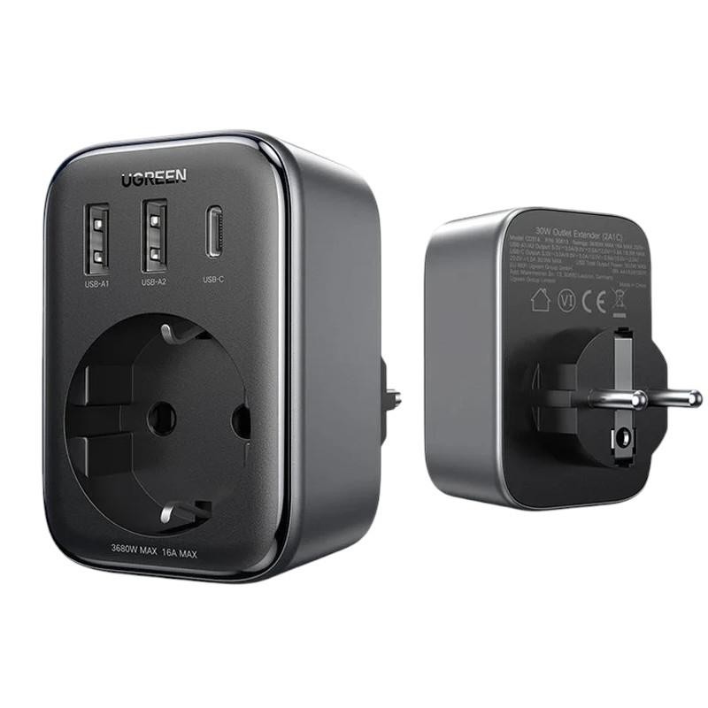 Ładowarka sieciowa Ugreen CD314 90613 do 2x USB, 1x USB-C 30W + AC 3680W