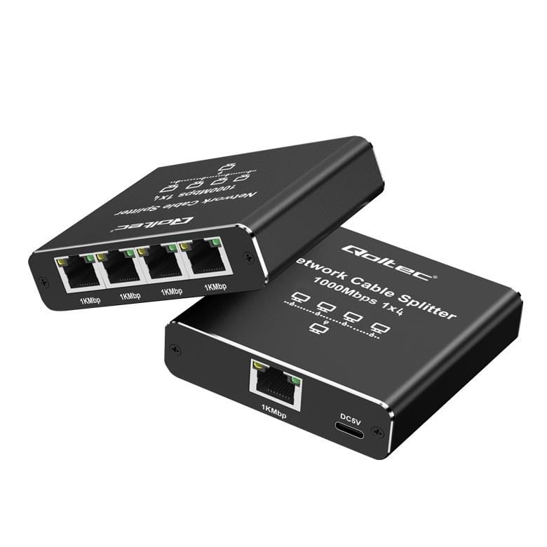 Switch niezarządzalny Qoltec mini rozdzielacz splitter 1x4 port RJ45 | 1000Mb/s | USB-C | Aluminium - OTW OPAK