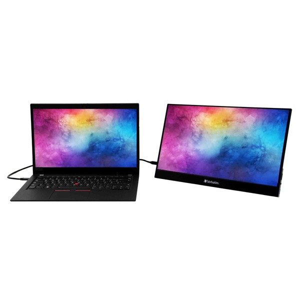 Przenośny monitor Verbatim zapewnia 16,7 mln kolorów w rozdzielności 1080 p lub Full HD i dzięki wykorzystaniu technologii IPS (technologii przełączania płaszczyzn) zapewnia ostrzejszy i bardziej dokładny obraz i szeroki kąt oglądania na ekranie 16:9. Wbudowany stojak umożliwia rozłożenie monitora pod kątem, który najbardziej będzie Ci odpowiadał w wybranej pozycji, co pozytywnie wpłynie na komfort i ogólną produktywność.